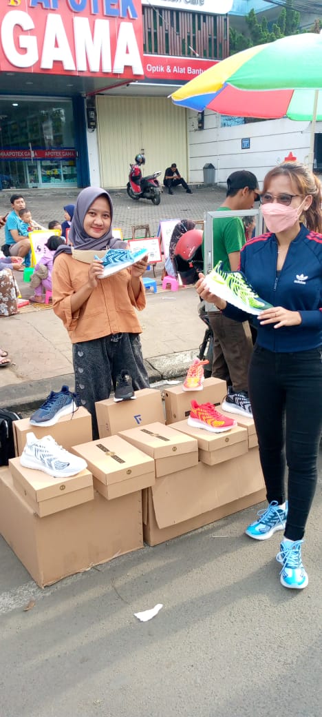 Serang, Siber24Jam.Com – sepatu olahraga Merek Golden Zahaya dan Fit adakan promo di kota Serang Banten pada hari minggu yang di adakan bertepan dengan hari bebes kendraan. Minggu (06/11/2022).