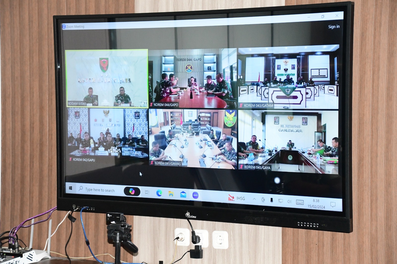 Sumatera Selatan, Siber24jam.com – Via Vicon, Danrem 044/Gapo, Brigjen TNI Muhammad Thohir, S.Sos., M.M., beserta Stafnya mengikuti pengarahan Pangdam II/Swj terkait pelaksanaan Pemilu di Wilayah Kodam II/Swj, Kamis (15/2/2024).