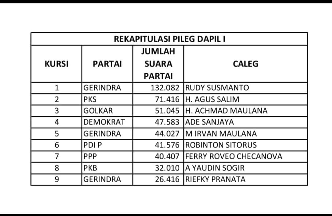 Total perolehan suara: 32.010 suara.