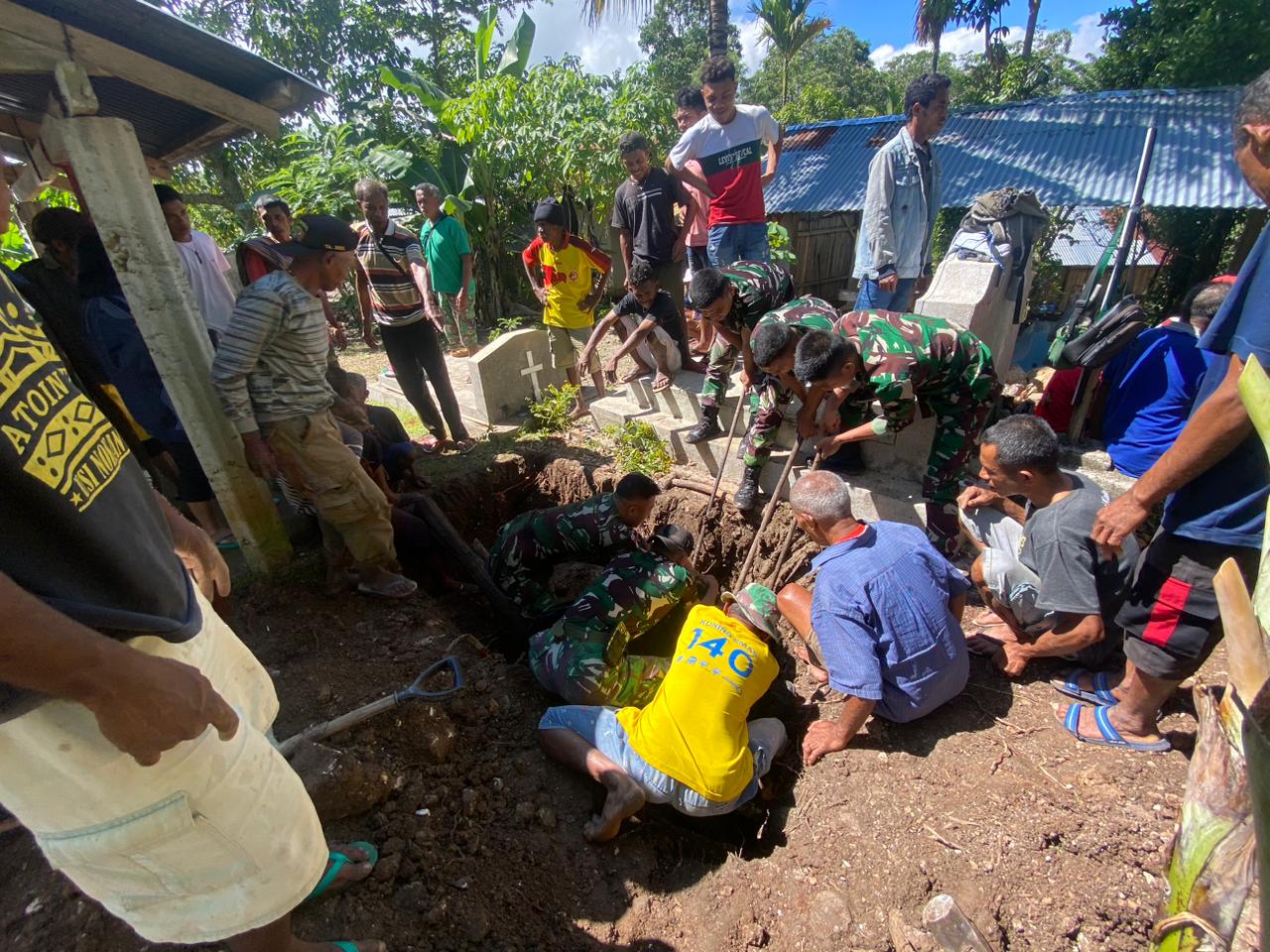 Siber24jam.com – Pos Nilulat Satgas Yonkav 6/Naga Karimata turut membantu masyarakat Desa Nilulat, Kecamatan Bikomi Nilulat, Kabupaten TTU, Provinsi NTT, yang sedang mengalami kedukaan dengan menggali kuburan. (11/6/2024)