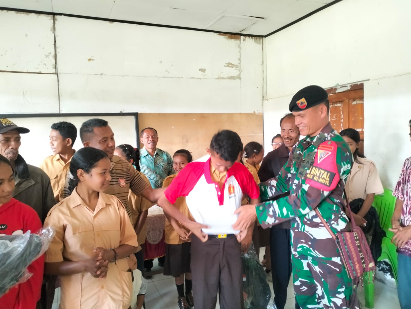 Eban, NTT, Siber24jam.com -Dalam rangka memberikan apresiasi kepada siswa yang meraih nilai terbaik, Mako Satgas Yonkav 6/Naga Karimata memberikan tas dan baju untuk meningkatkan motivasi belajar siswa di Desa Eban, Kecamatan Miomaffo Barat, Kabupaten Timor Tengah Utara, Provinsi Nusa Tenggara Timur, pada 16 Juni 2024.