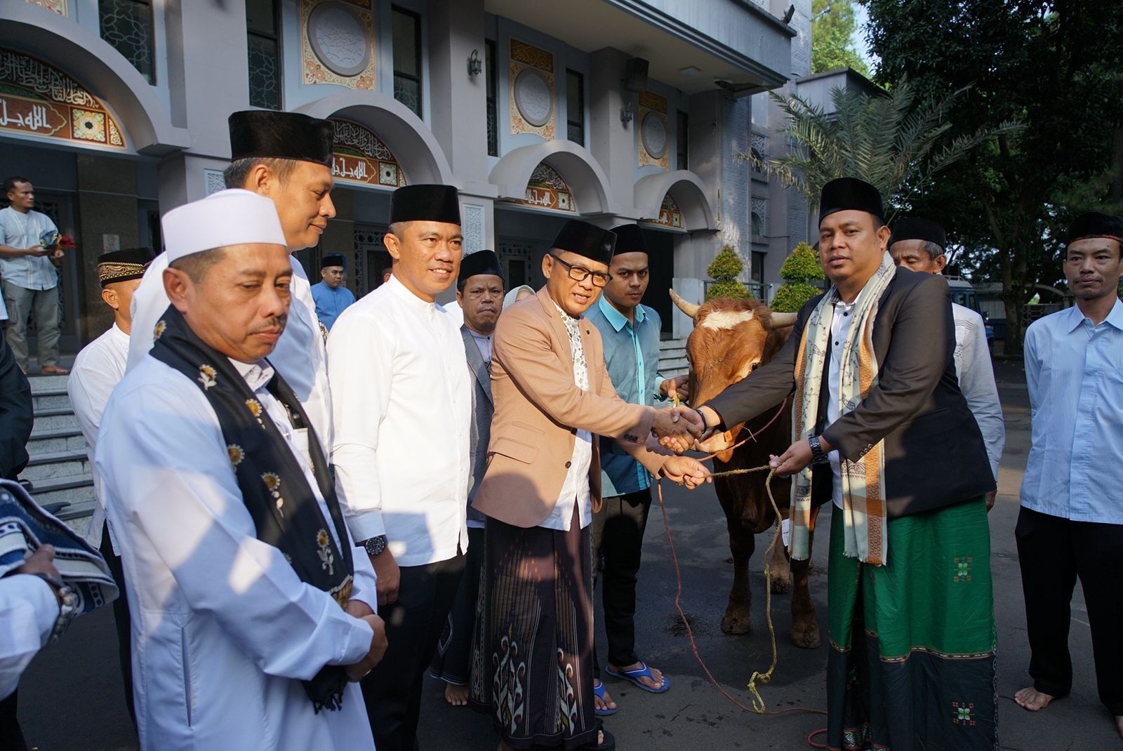 Sapi berjenis limosin dengan bobot 450 kilogram tersebut diserahkan usai melaksanakan ibadah salat Idul Adha di Masjid Raya yang penyerahannya langsung diberikan Penjabat (Pj) Wali Kota Bogor, Hery Antasari.