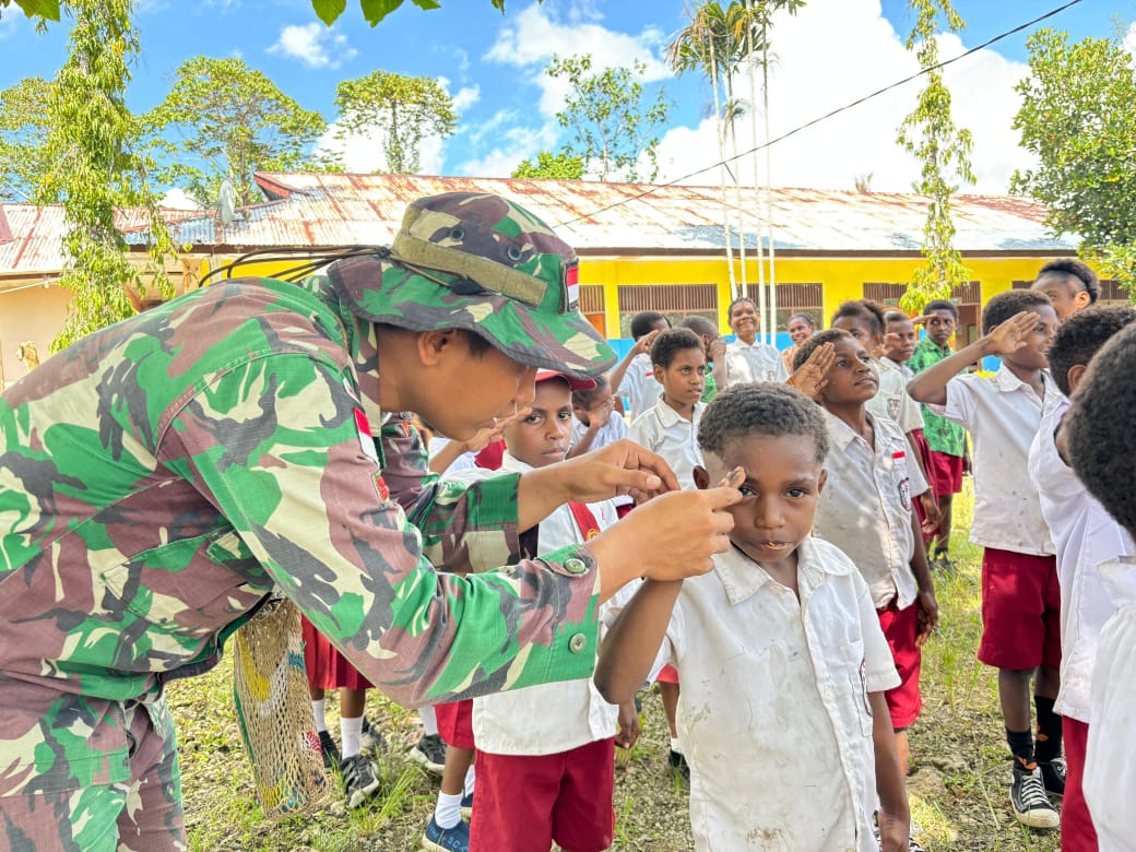 Saya Sebagai Perwakilan dari Guru dan murid-murid SD Inpres Sawiyatami berterima kasih atas kegiatan yang dilaksanakan oleh Bapak- bapak TNI dari Satgas Yonif 122/TS Pos Sawiyatami yang telah membantu mengajarkan PBB kepada murid-murid SD Inpres Sawiyatami karena telah memberikan semangat dan penghiburan supaya mereka lebih semangat lagi dalam bersekolah, “ujar Guru SD Inpres Sawiyatami Bu Nurfitri. (Yonif 122/TS)