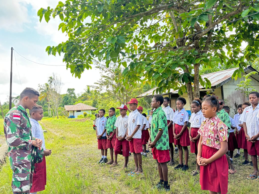 Kabupaten Keerom, Siber24jam.com – Satgas Pamtas Statis RI-PNG Yonif 122/Tombak Sakti melalui Pos Sawiyatami melaksanakan kegiatan belajar mengajar bersama Siswa SD Inpres Sawiyatami, Kampung Sawiyatami, Distrik Mannem, Kabupaten Keerom, Papua (02/08/2024)