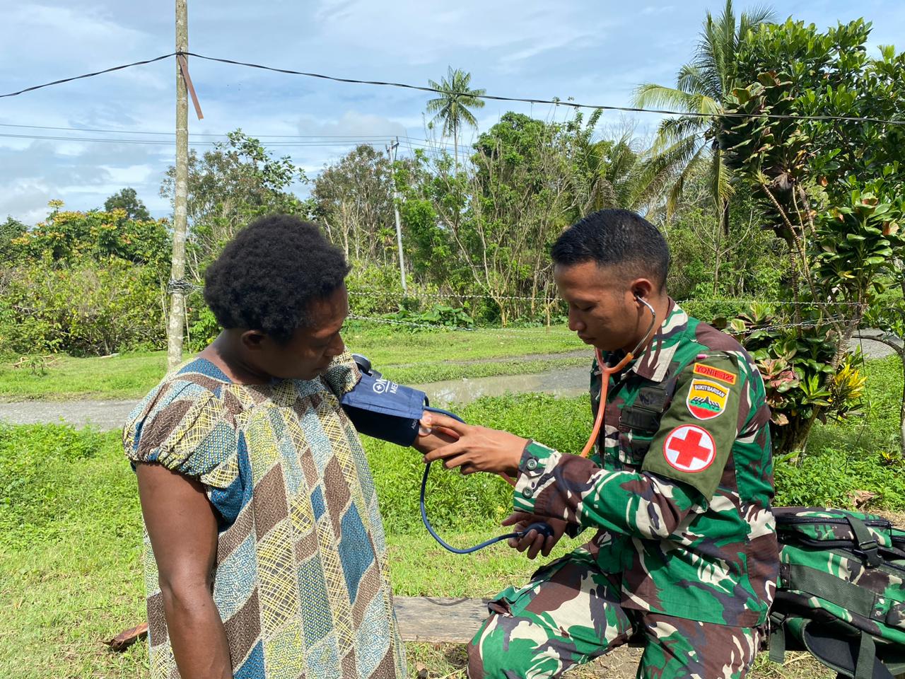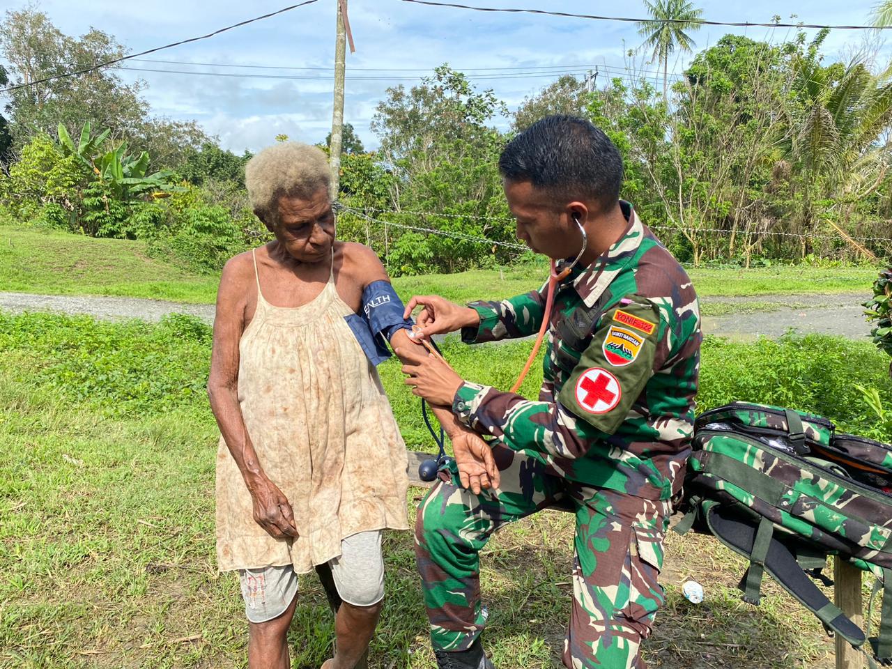 Kabupaten Keerom, Siber24jam.com – Satgas Pamtas Statis RI-PNG Yonif 122/TS Pos Kalipay melaksanakan kegiatan pelayanan kesehatan kepada para lansia dan masyarakat di perbatasan kampung Pund, Distrik Waris, Kabupaten Keerom, Papua Senin (05-08-2024).