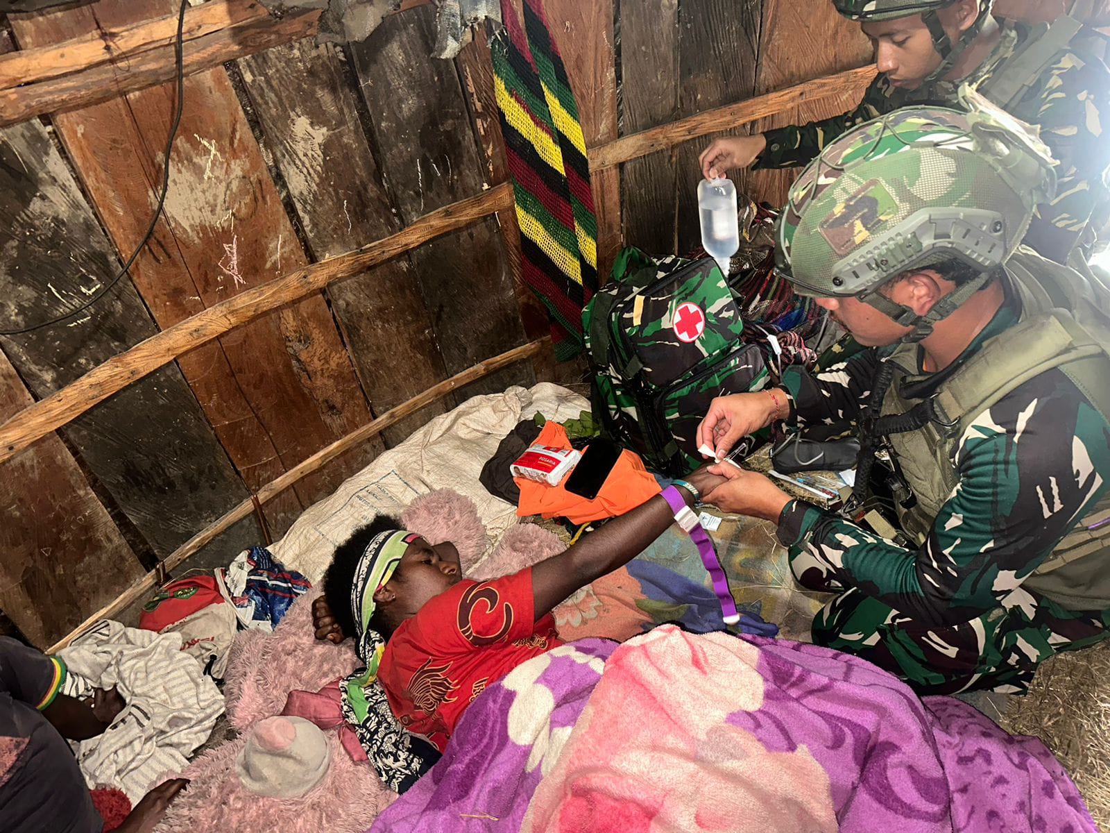 Setelah sampai di honai yang dituju, Prada I Wayan Tresna dan Prada Fadhil selaku personel kesehatan dari titik kuat pintu jawa langsung memberikan penanganan kepada masyarakat yang sedang sakit, Melani Murib (19) dan Endis Telenggen (13). Diawali dengan pengecekan suhu badan, tekanan darah, dan keluhan kondisi tubuh, dilanjutkan dengan pemasangan alat infus dikarenakan kondisi badan sudah lemas, diakhir penanganan, prajurit titik kuat pintu jawa memberikan obat sesuai dengan keluhan dan juga menekankan agar menjaga kebersihan serta pola makan agar dapat segera pulih dan dapat menjalankan aktivitas kembali.