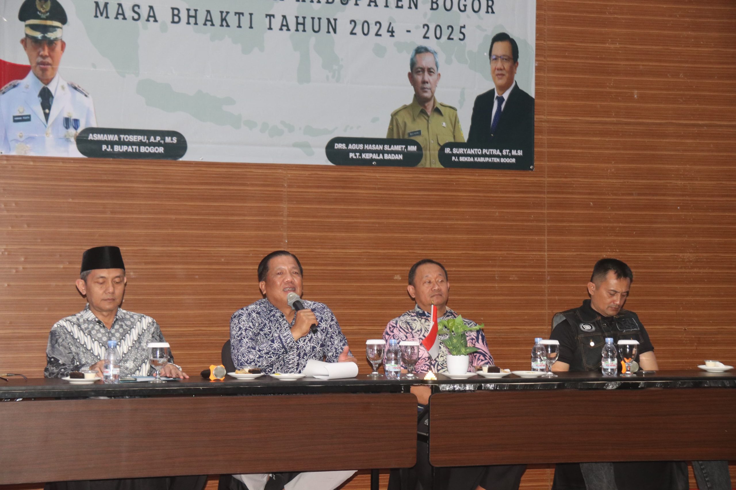 Kegiatan berlangsung di Hotel Lorin, Kecamatan Babakan Madang, Ahad (11/08). Hadir mendampingi Pj. Sekda, Plt. Kepala Bakesbangpol, Ketua Tim Fasilitator Brigjen Ari Pitoyo, pelatih dari Danramil Cibinong, Kapten Tatang Taryono.