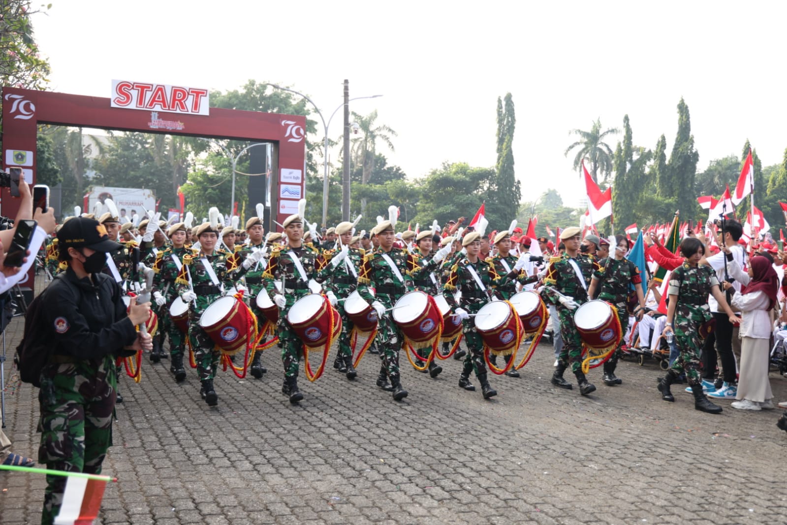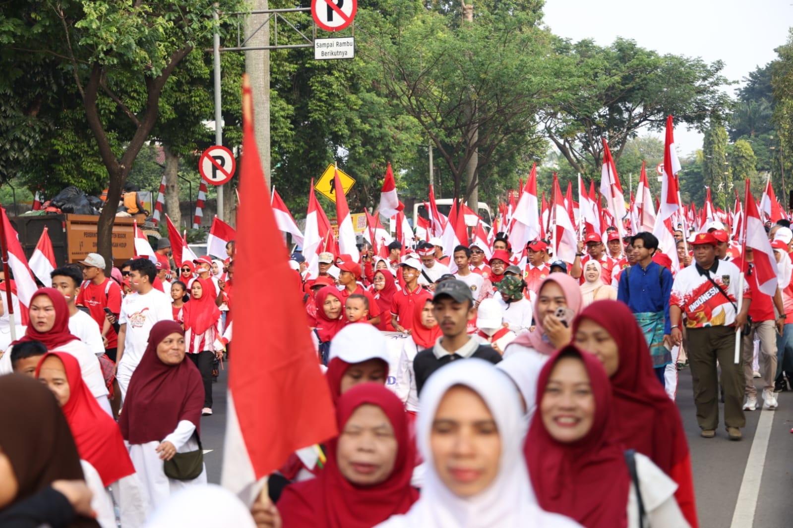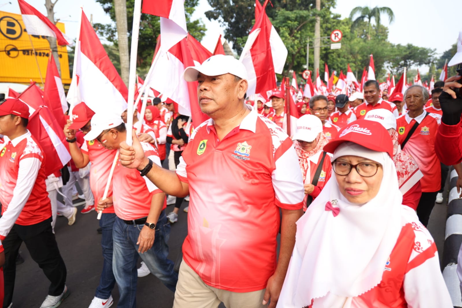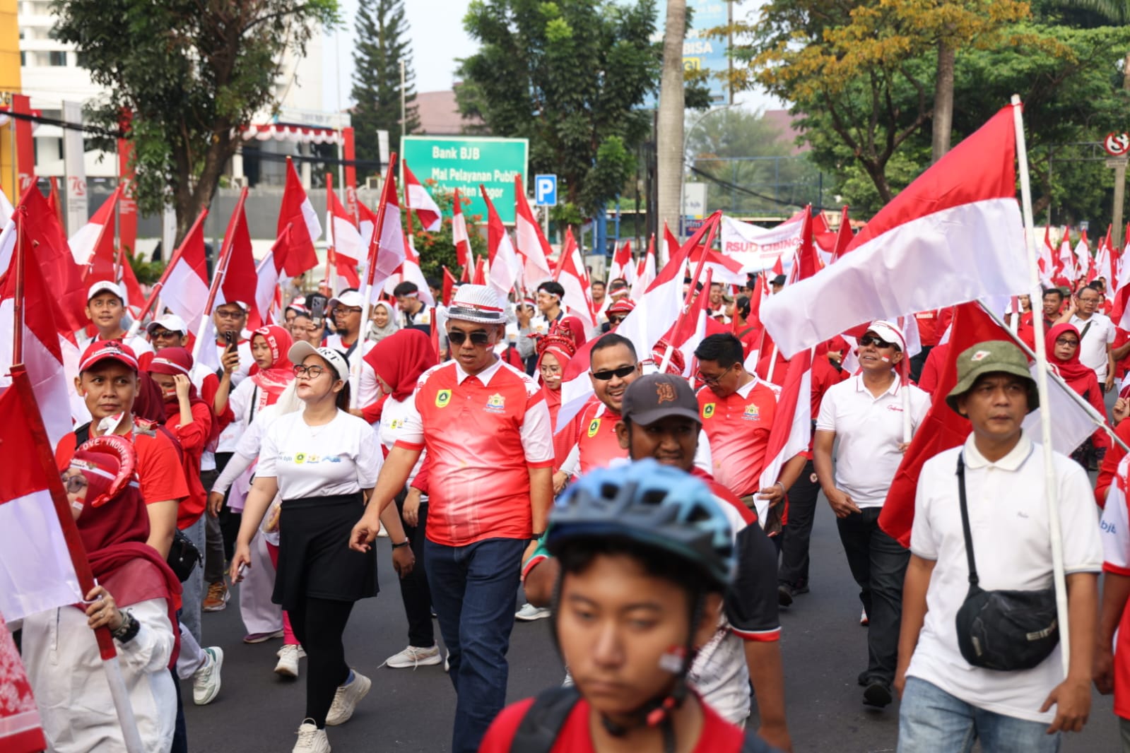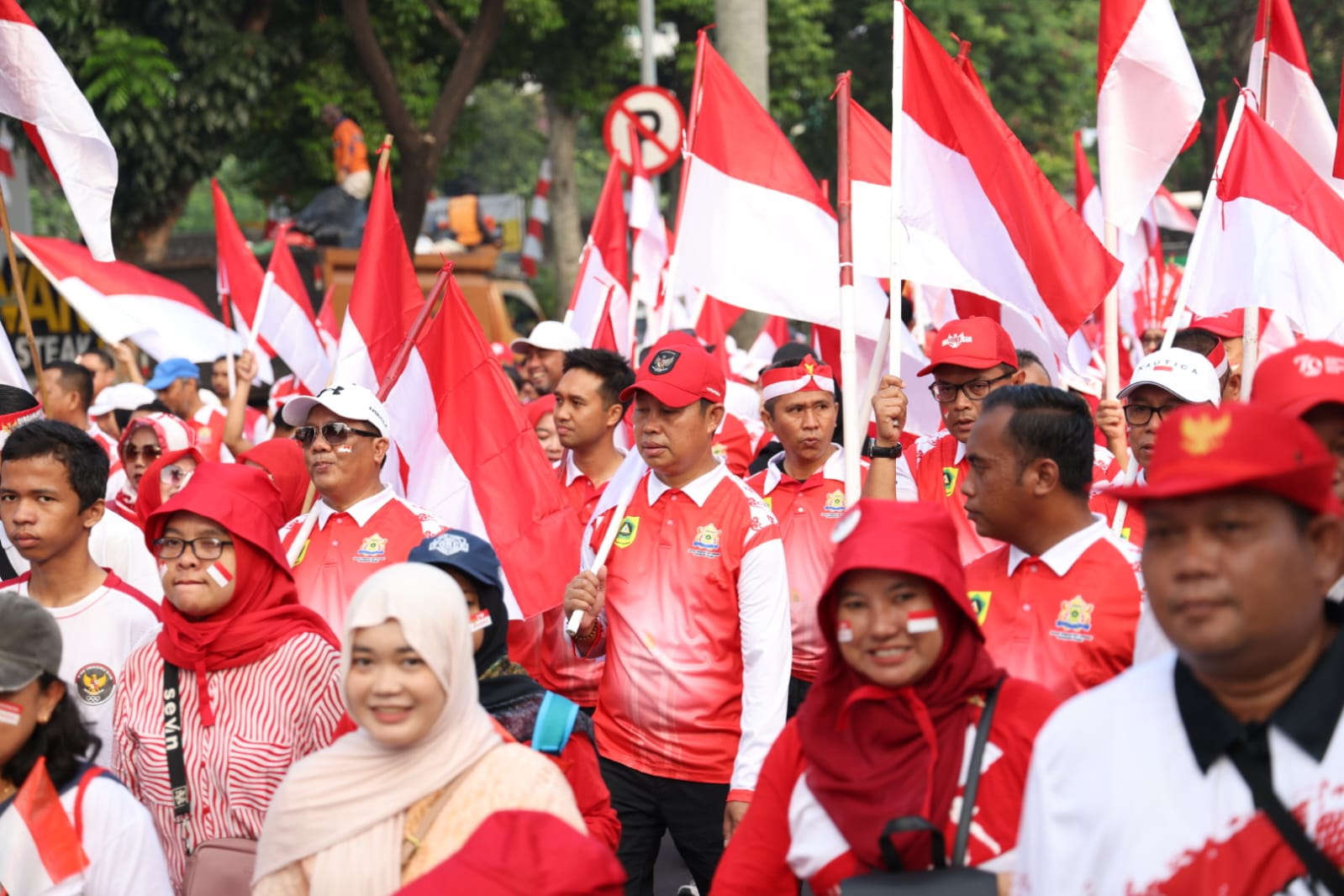 CIBINONG, Siber24jam.com – Memeriahkan semarak Hari Ulang Tahun (HUT) Kemerdekaan ke-79 Republik Indonesia, Pemerintah Kabupaten Bogor lakukan kirab bendera merah putih dengan rute mulai dari Lapangan Tegar Beriman finish di Stadion Pakansari. Kirab bendera merah putih ini dipimpin langsung oleh Pj. Bupati Bogor Asmawa Tosepu dan diikuti oleh ribuan Aparatur Sipil Negara (ASN) dan masyarakat Kabupaten Bogor, Minggu (11/8/24).