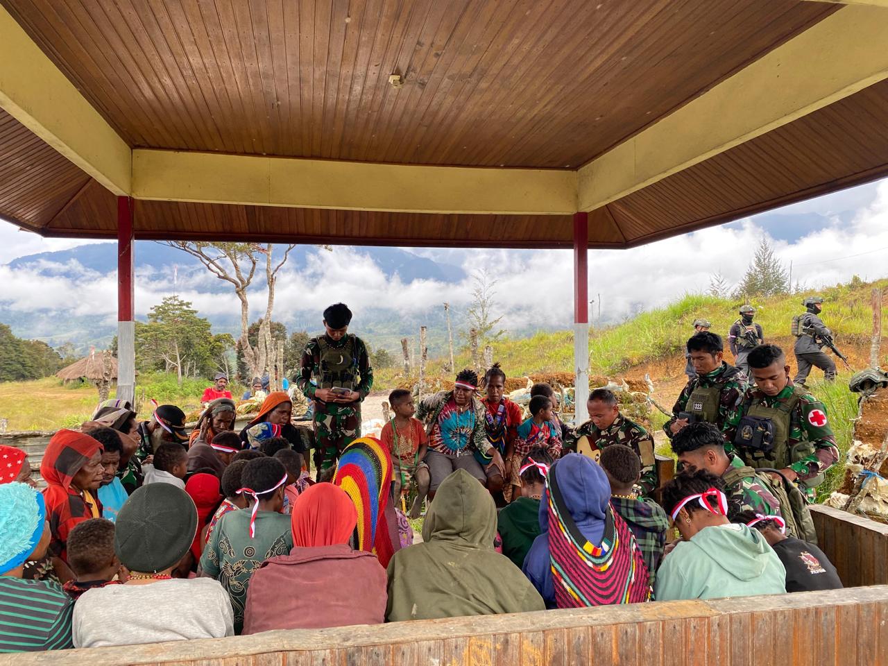 Eronggobak, Siber24jam.com – Pos Eromaga Satgas Mobile Yonif 323 Buaya Putih Pimpinan Lettu Inf Anggun melaksanakan ibadah Mingguan bersama masyarakat kampung Eronggobak bertempat di pos Eromaga, Distrik Omukia, Kabupaten Puncak, Papua Tengah, Minggu kemarin (11/08/24).