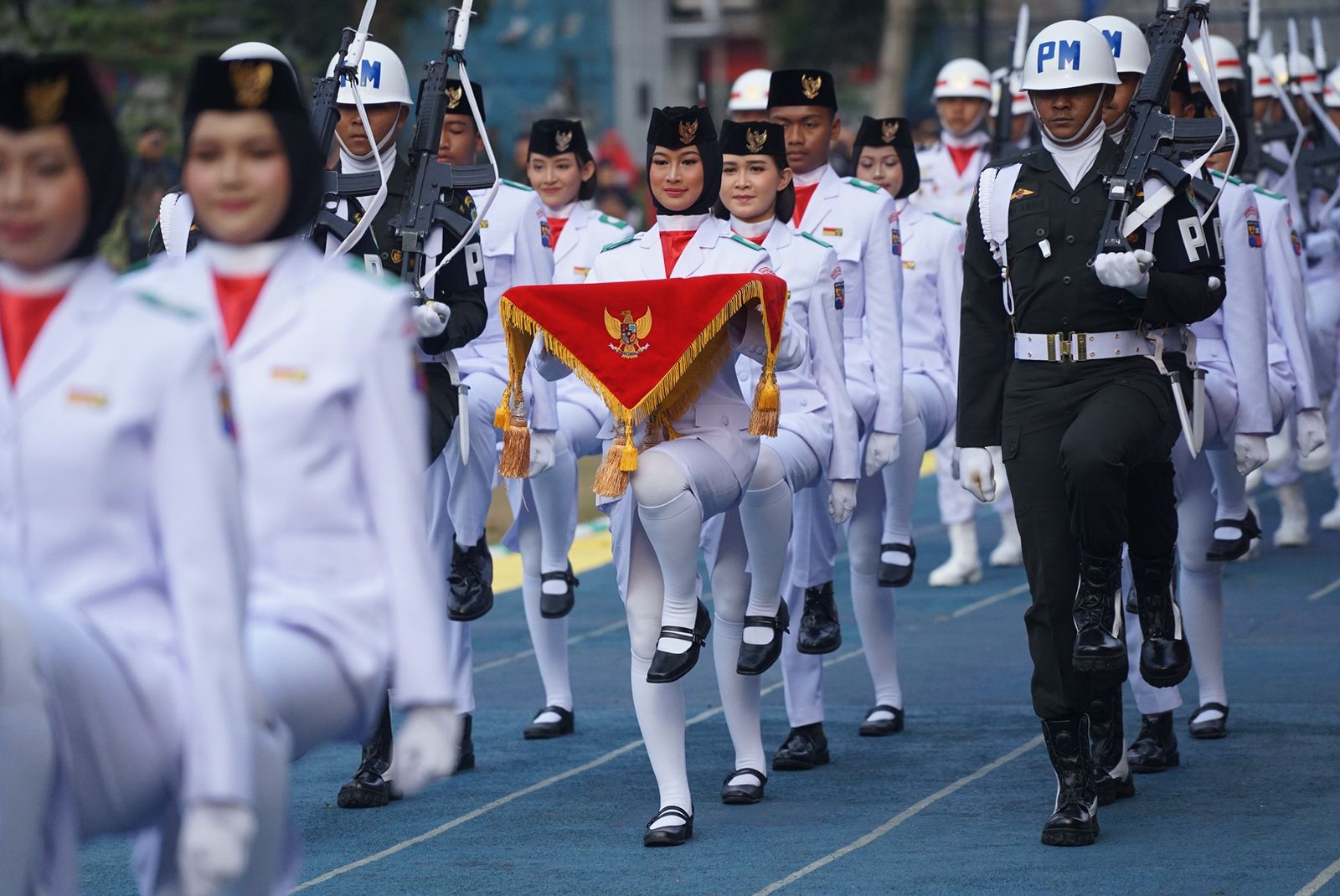 Untuk tiga petugas pengibar bendera terdiri dari Muhammad Fathir Rahman, berasal dari SMA Plus YPHB, Rayan Alfreda Masood, berasal dari SMA Pelita Satu dan Joy Stefanus Deo Gratias, dari SMA Kesatuan Bogor. Sementara pembawa baki bendera, Muthi Halimah Ibtihal berasal dari SMAN 6 Kota Bogor.