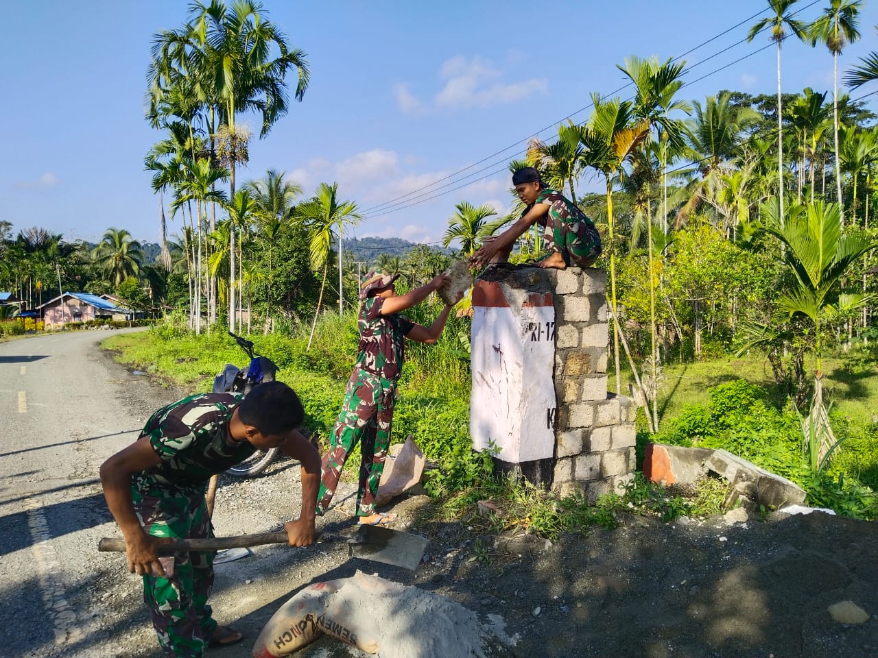 Kabupaten Keerom, Siber24jam.com – Satuan tugas pengamanan perbatasan RI-PNG Yonif 122/TS bersama masyarakat Kampung Ampas merenovasi gapura desa, sebagai bentuk kebersamaan dalam membangun wajah kampung Ampas yang indah dan permai di Distrik Waris, Kabupaten Keerom, Papua,(20/08/2024).
