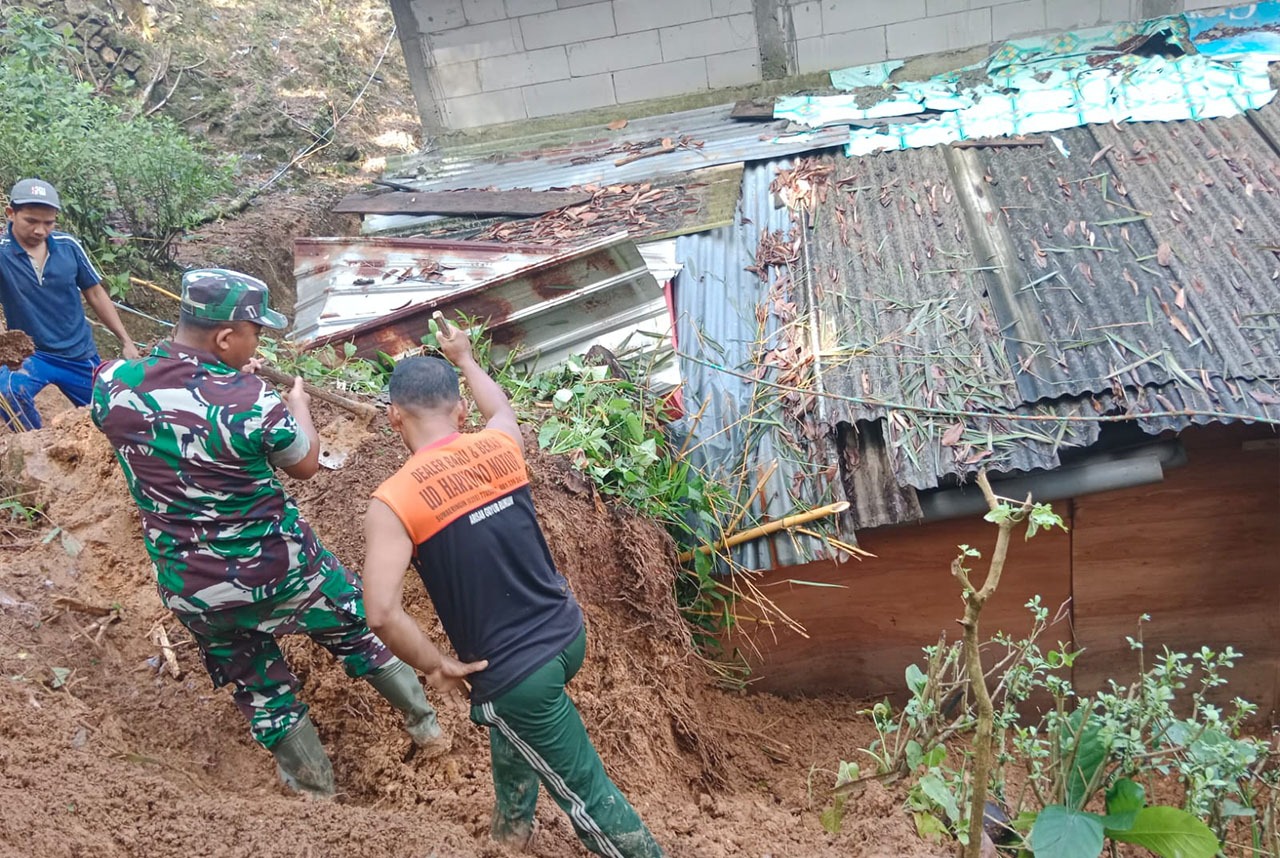 Gotong Royong Warga Munjungan Hadapi Longsor Rumah Warga Tertimpa, Babinsa dan Bhabinkamtibmas Sigap Membantu
