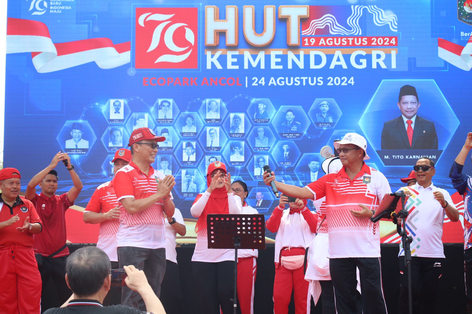Hal itu disampaikan penuh keceriaan saat keluarga besar Kementerian Dalam Negeri melaksanakan jalan santai merayakan HUT RI-79 di EcoPark Ancol, Jakarta, Sabtu, 24 Agustus 2024.