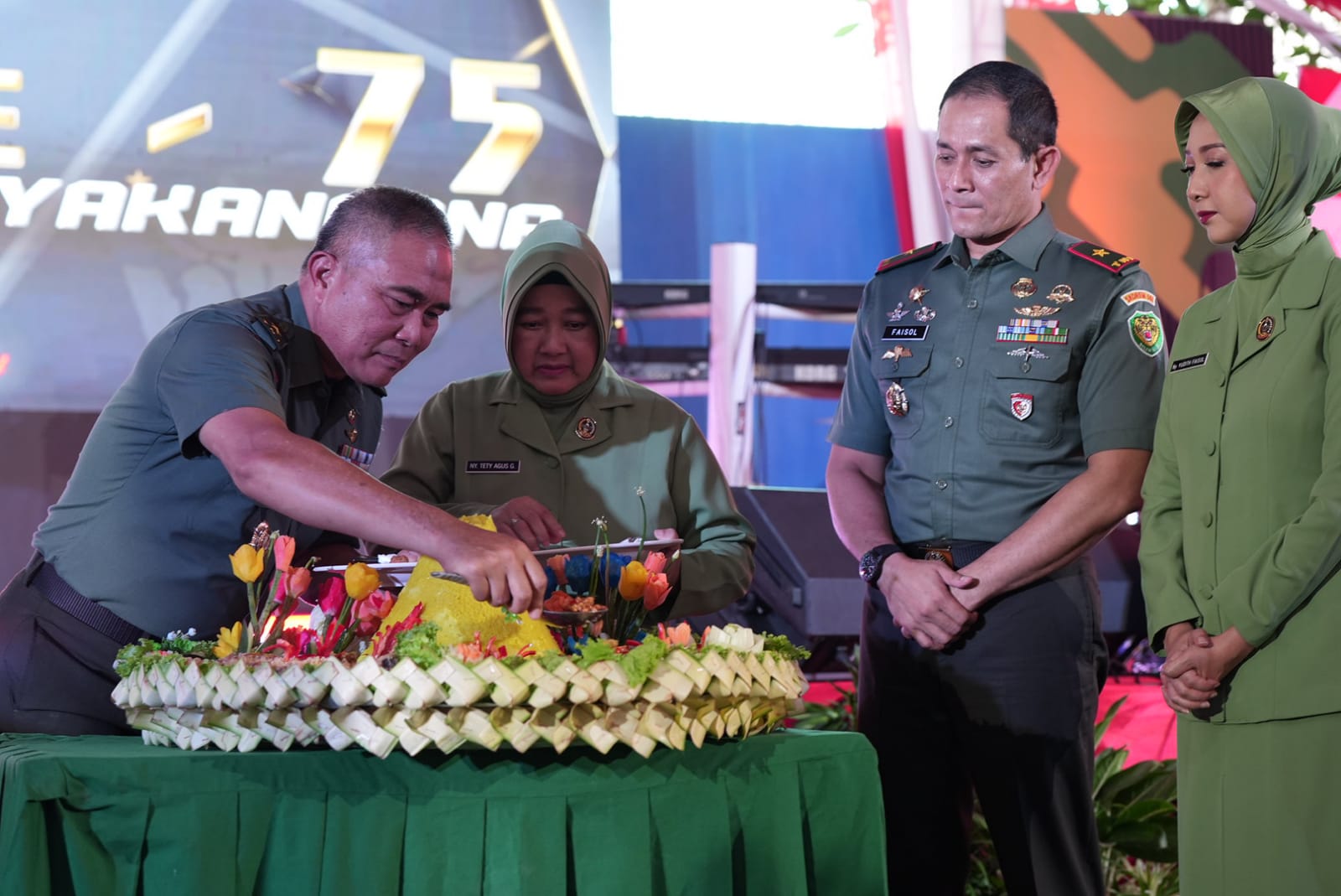 Menyampaikan amanat Pangdam III Siliwangi, Irdam III/Siliwangi, Brigadir Jenderal TNI Agus Gunawan mengucapkan selamat ulang tahun ke-75 kepada seluruh prajurit dan PNS Korem 061/Suryakancana, semoga momentum ulang tahun ini menjadi refleksi terhadap pelaksanaan tugas yang telah kita laksanakan dalam menjaga kedaulatan Negara Kesatuan Republik Indonesia.