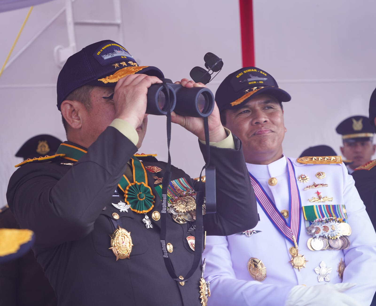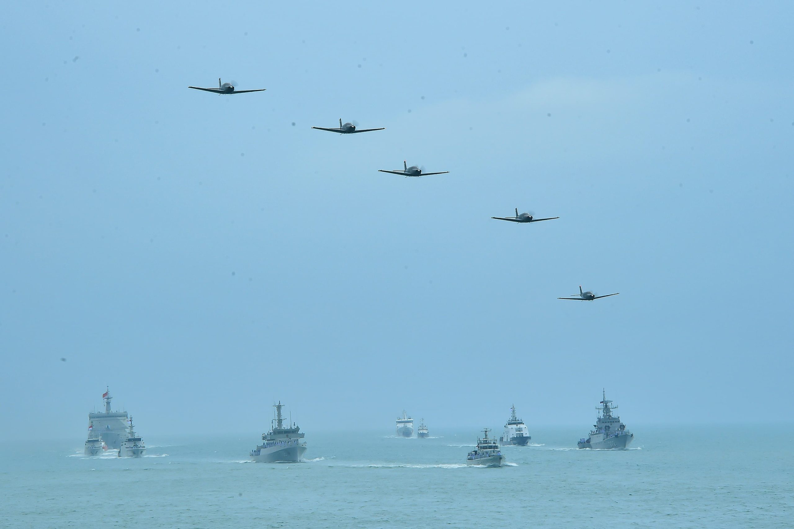 Acara juga dimeriahkan dengan demonstrasi pertempuran laut yang melibatkan kapal-kapal perang TNI AL, menunjukkan kekuatan dan kesiapan tempur TNI AL dalam menjaga kedaulatan perairan Indonesia.