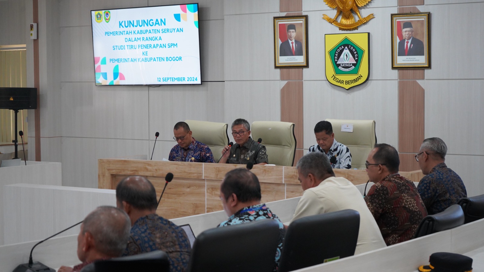 CIBINONG, Siber24jam.com – Pemerintah Kabupaten (Pemkab) Bogor terima kunjungan dari Kabupaten Seruyan Provinsi Kalimantan Tengah dalam rangka studi tiru mengenenai pengelolaan Standar Pelayanan Minimal (SPM) di Kabupaten Bogor. Kunjungan dipimpin langsung oleh Pj. Bupati Seruyan dan diterima oleh Asisten Pemerintahan dan Kesejahteraan Rakyat (Aspemkesra) Kabupaten Bogor, Zainal Ashari di Ruang Rapat Bupati, Kamis (12/9/24).