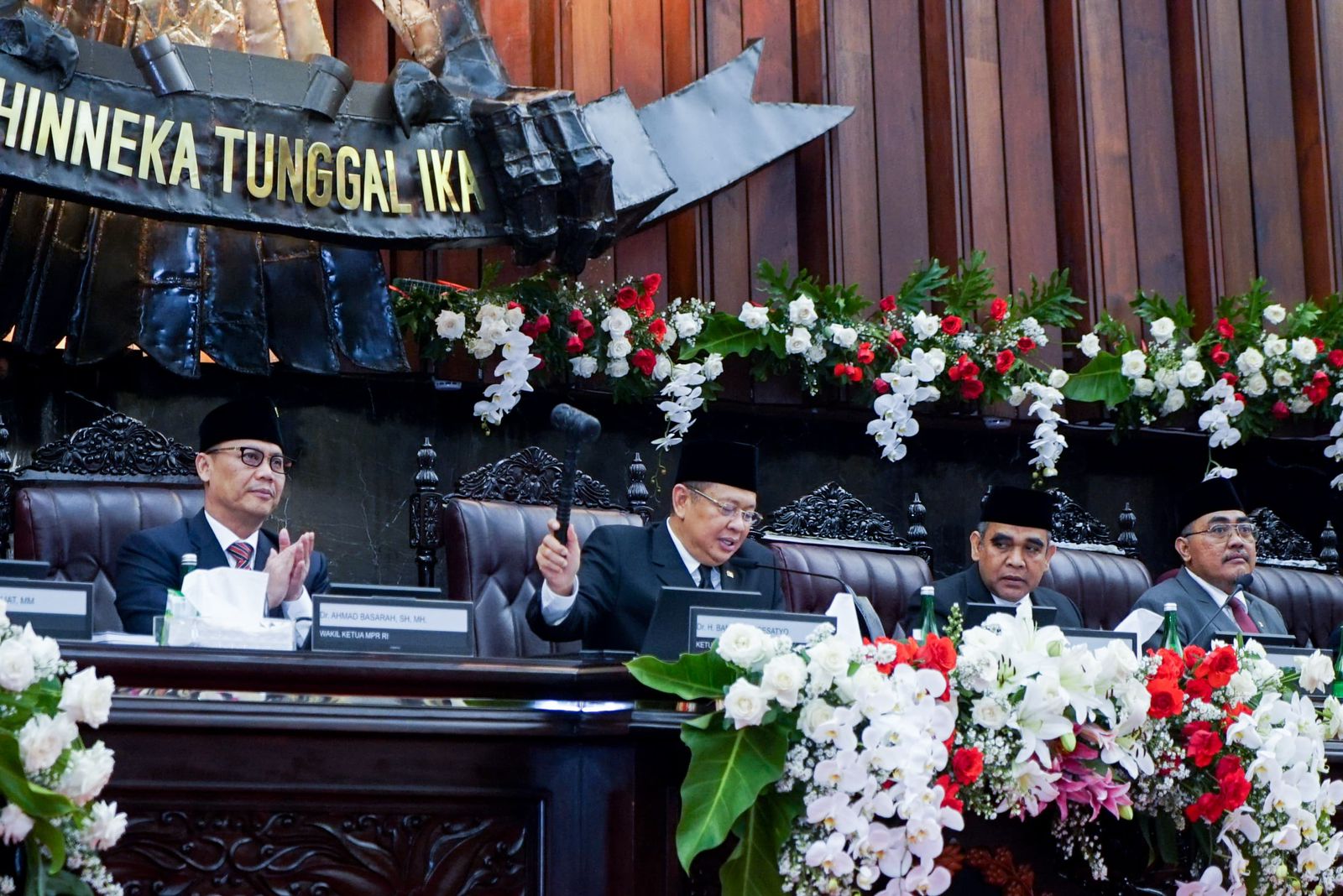 “Alhamdulillah, atas berkat rahmat Tuhan Yang Maha Kuasa, serta dengan semangat kebersamaan dan gotong-royong yang menjadi ciri khas kearifan bangsa Indonesia, kita patut bersyukur dan berbangga, sebagai bangsa yang dapat melewati berbagai tantangan dan ujian tersebut dengan baik,” ujar Bamsoet saat Sidang Paripurna Akhir Masa Jabatan MPR 2019-2024 di Gedung Parlemen, Jakarta, Rabu (25/9/24).