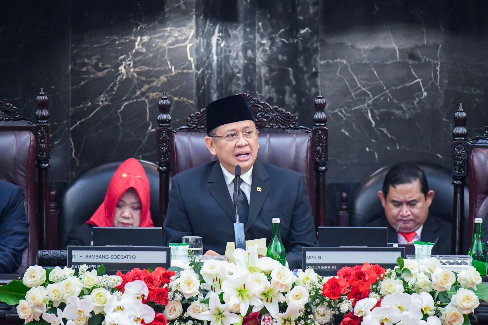 Hadir antara lain Ketua DPR RI Puan Maharani, Wakil Ketua MPR Ahmad Basarah, Ahmad Muzani, Lestari Moerdijat, Jazilul Fawaid, Sjarifuddin Hasan, Hidayat Nur Wahid, Fadel Muhammad, Yandri Susanto dan Amir Uskara, Wakil Ketua DPR RI Lodewijk Freidrich Paulus, Sufmi Dasco Ahmad, Rachmad Gobel dan Muhaimin Iskandar serta Wakil Ketua DPD RI Sultan Baktiar Najamudin.