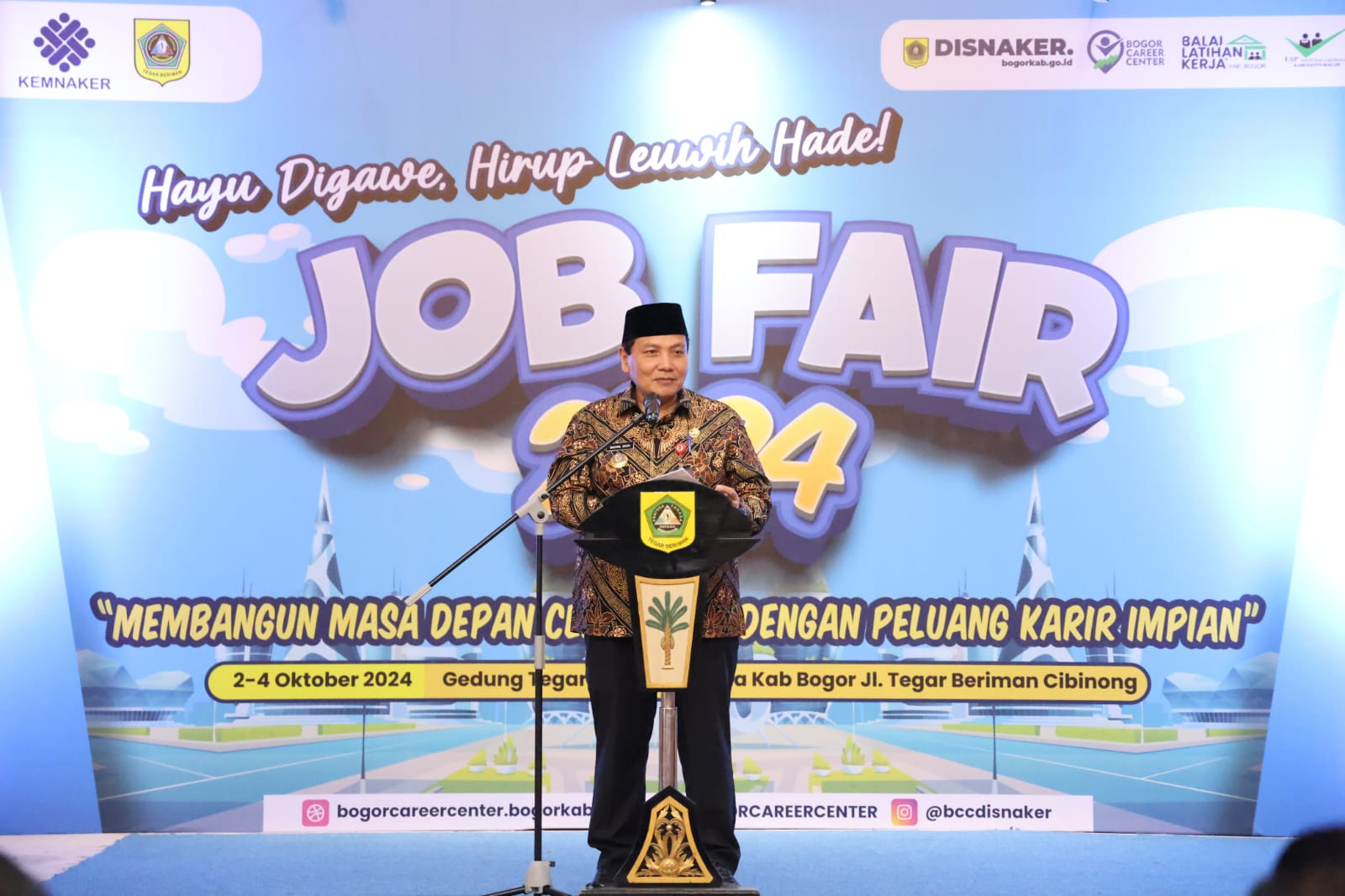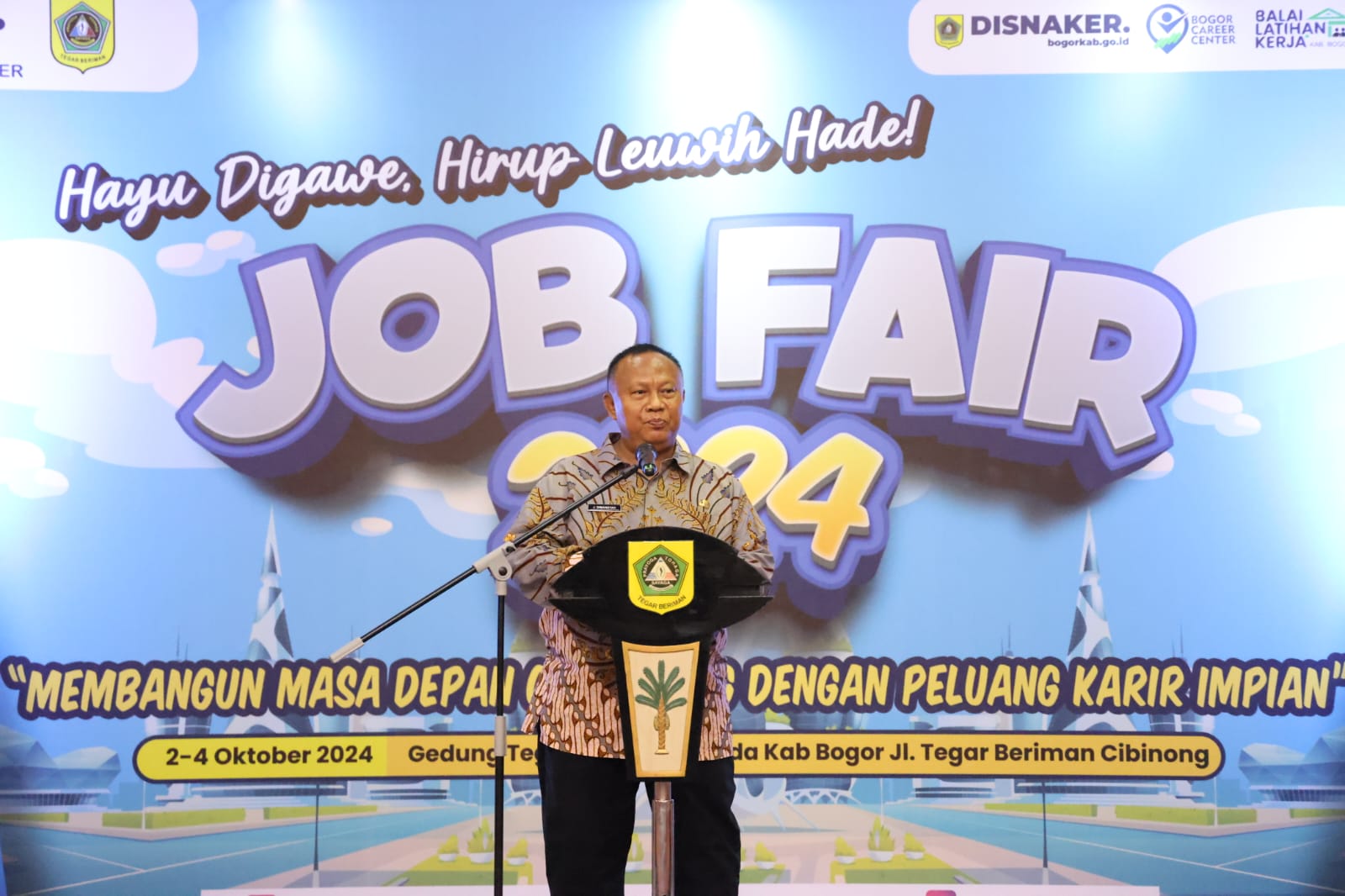 CIBINONG, Siber24jam.com – Pemerintah Kabupaten (Pemkab) Bogor menggelar Job Fair 2024 dengan tema “Hayu di Gawe, Hirup Leuwih Hade”, berlangsung selama tiga hari dari 2 hingga 4 Oktober 2024. Acara ini dibuka oleh Pj. Bupati Bogor, Bachril Bakri, di Gedung Tegar Beriman pada Rabu, 2 Oktober 2024.
