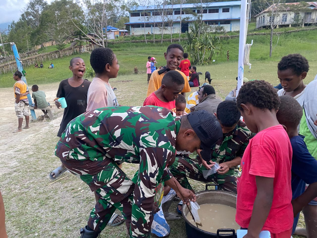 Mamberamo Tengah, Siber24jam.com – Satgas Yonif 641/Bru Pos Eragayam menunjukkan kepedulian terhadap kesehatan anak-anak di Distrik Eragayam, Kabupaten Mamberamo Tengah, Provinsi Papua Pegunungan, dengan membagikan bubur kacang hijau pada Senin (21/10/2024). Kegiatan ini bertujuan untuk meningkatkan gizi anak-anak di wilayah tersebut, sebagai bagian dari program pembinaan wilayah dan kemanunggalan TNI bersama masyarakat.