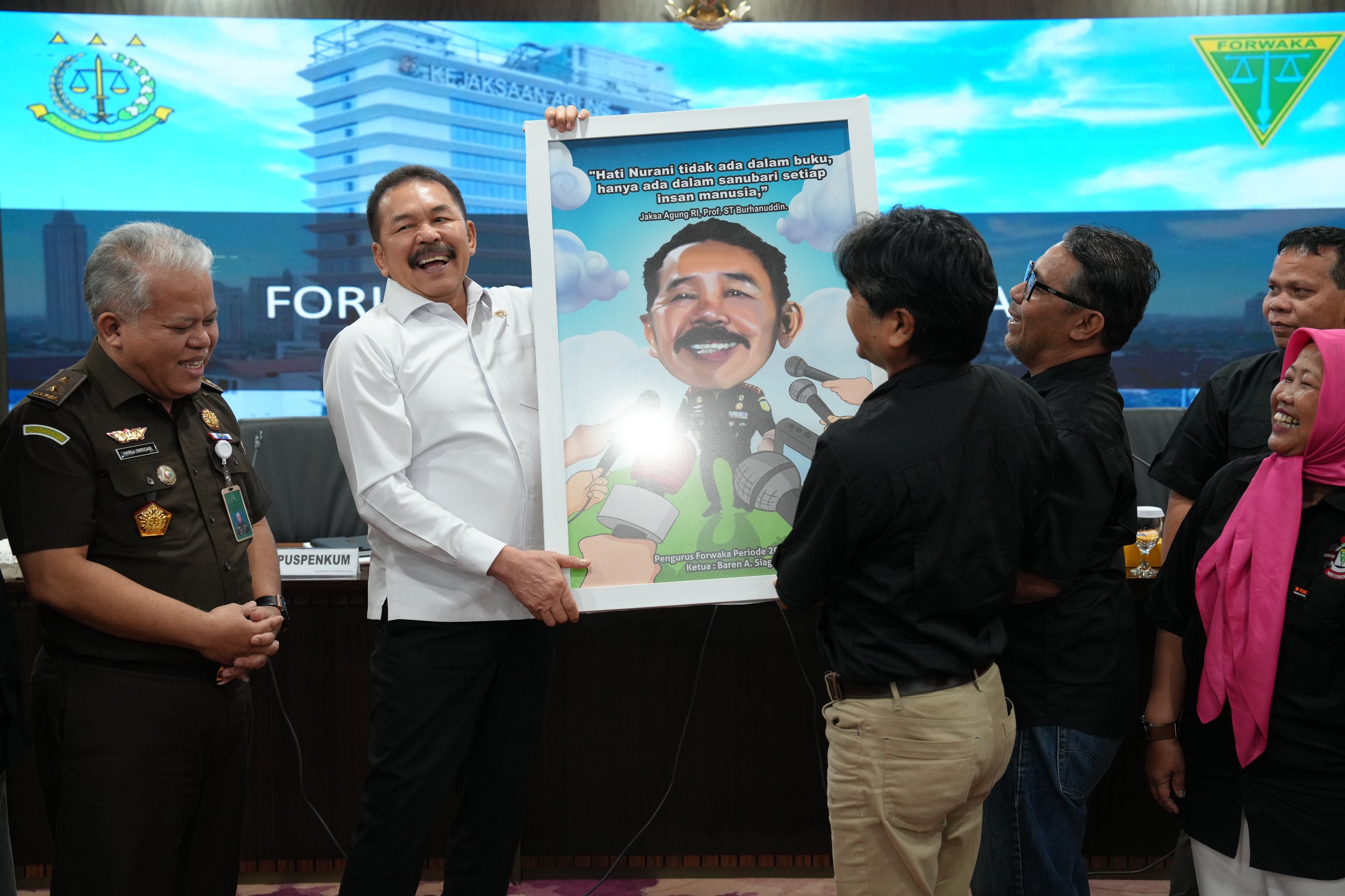 Dalam sambutannya, Jaksa Agung menyampaikan selamat atas dilantiknya kepengurusan baru FORWAKA periode 2024–2026 yang kini diketuai oleh Baren A. Siagian dari Harian Sinar Indonesia Baru (SIB). Ia menekankan pentingnya peran media sebagai mitra strategis dalam menyampaikan informasi kepada masyarakat.