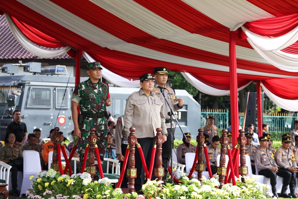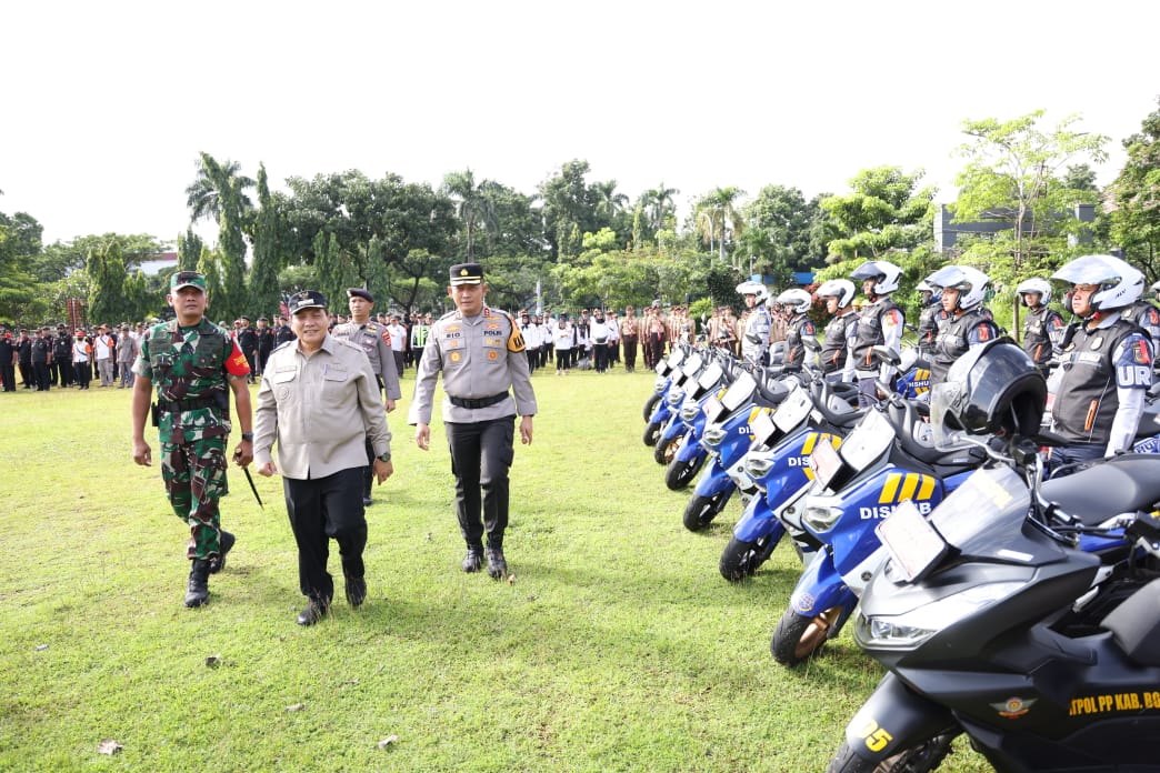 CIBINONG, Siber24jam.com – Jamin keamanan perayaan Hari Natal 2024 dan Tahun baru 2025 Pemerintah Kabupaten (Pemkab) Bogor bersama jajaran Polres Bogor akan menurunkan 7.500 personil untuk pengamanan Nataru yang dimatangkan melalui kegiatan Apel Pasukan Lilin Lodaya tahun 2024, yang dipimpin langsung oleh Pj. Bupati Bogor, Bachril Bakri di Lapangan Tegar Beriman, Jumat (20/12/24).