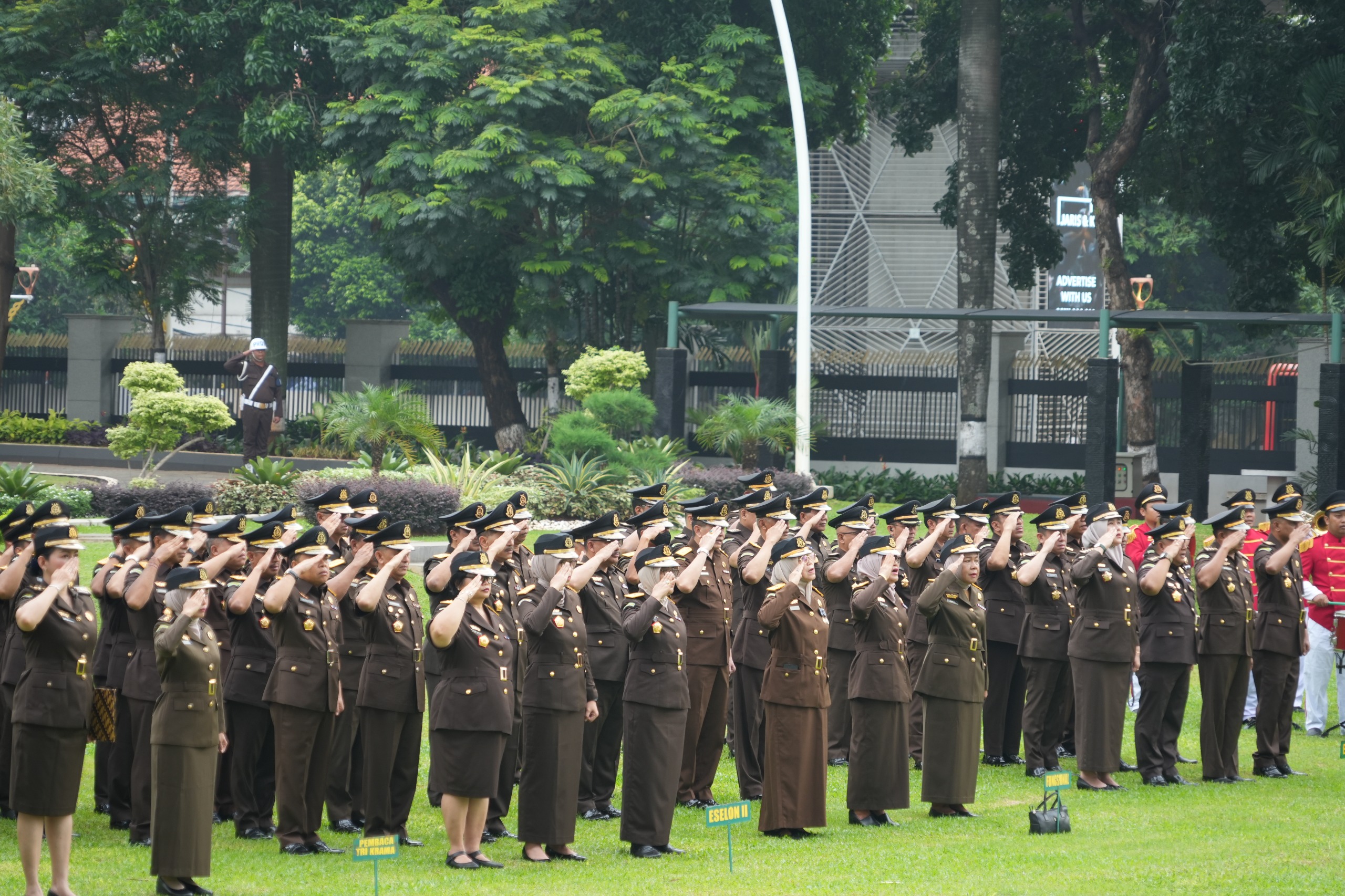 Upacara kali ini juga menampilkan petugas dari Insan Adhyaksa Wanita di Kejaksaan Agung dan dihadiri oleh Ketua Ikatan Adhyaksa Dharmakarini Pusat beserta jajaran pengurus.
