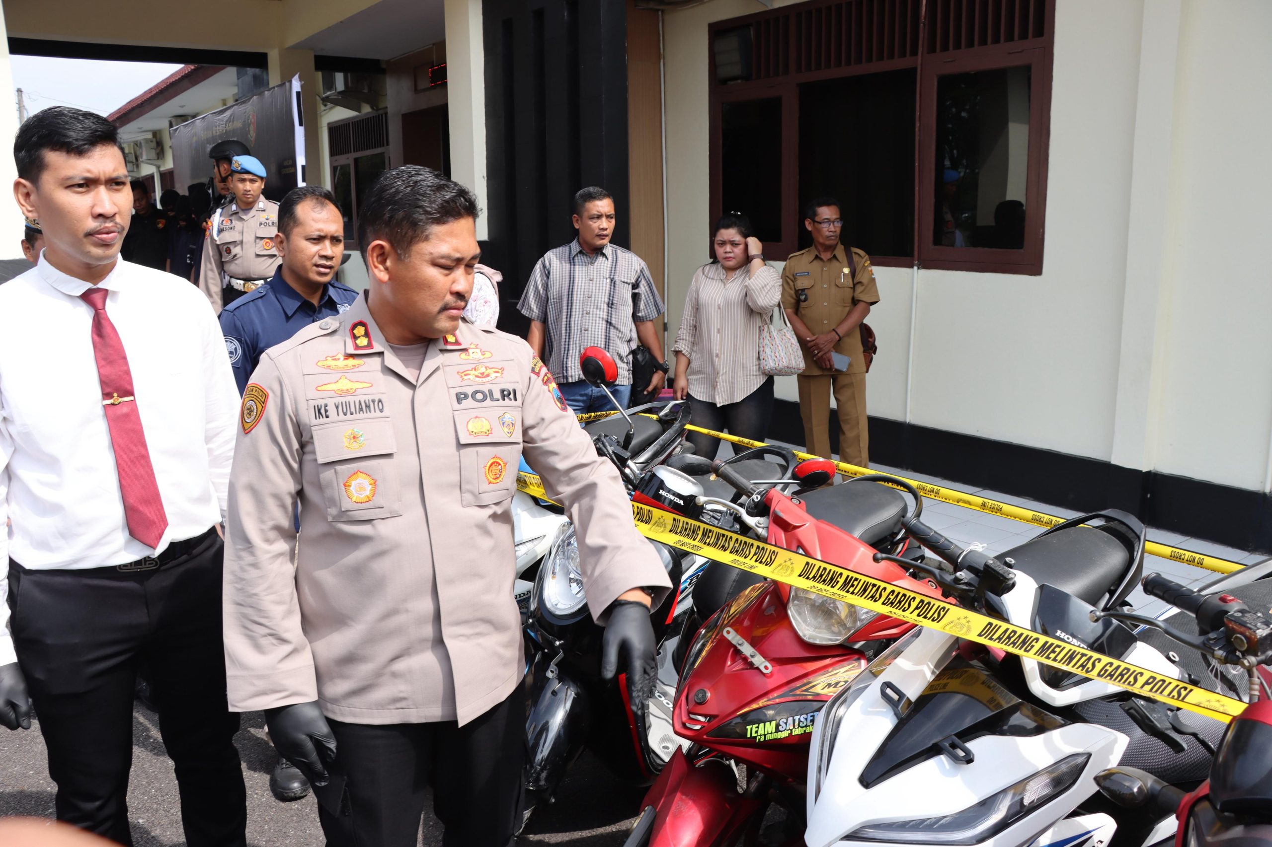 Adapun barang bukti yang diamankan terdiri dari: 10 unit sepeda motor: 1 Suzuki Satria FU, 2 Yamaha Vixion, 3 Honda Vario, 1 Honda Scoopy, 1 Honda Beat, 1 Yamaha Mio, dan 1 Yamaha Jupiter MX.