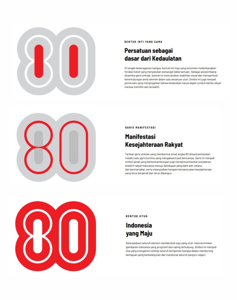 Dalam kesempatan yang sama, Prabowo juga memperkenalkan logo resmi HUT RI ke-80. Logo berbentuk angka “8” dan “0” yang didesain menyatu tanpa garis terputus, menggambarkan makna kesatuan dan kesinambungan. “Simbol infinity ini menyiratkan konektivitas dan semangat kebersamaan yang tak terputus,” ujarnya.