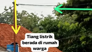 Tak hanya kabel yang terkelupas, tiang listrik pun berdiri tepat di atas lahan rumah warga, menambah potensi bahaya terutama saat hujan deras dan petir menyambar.
