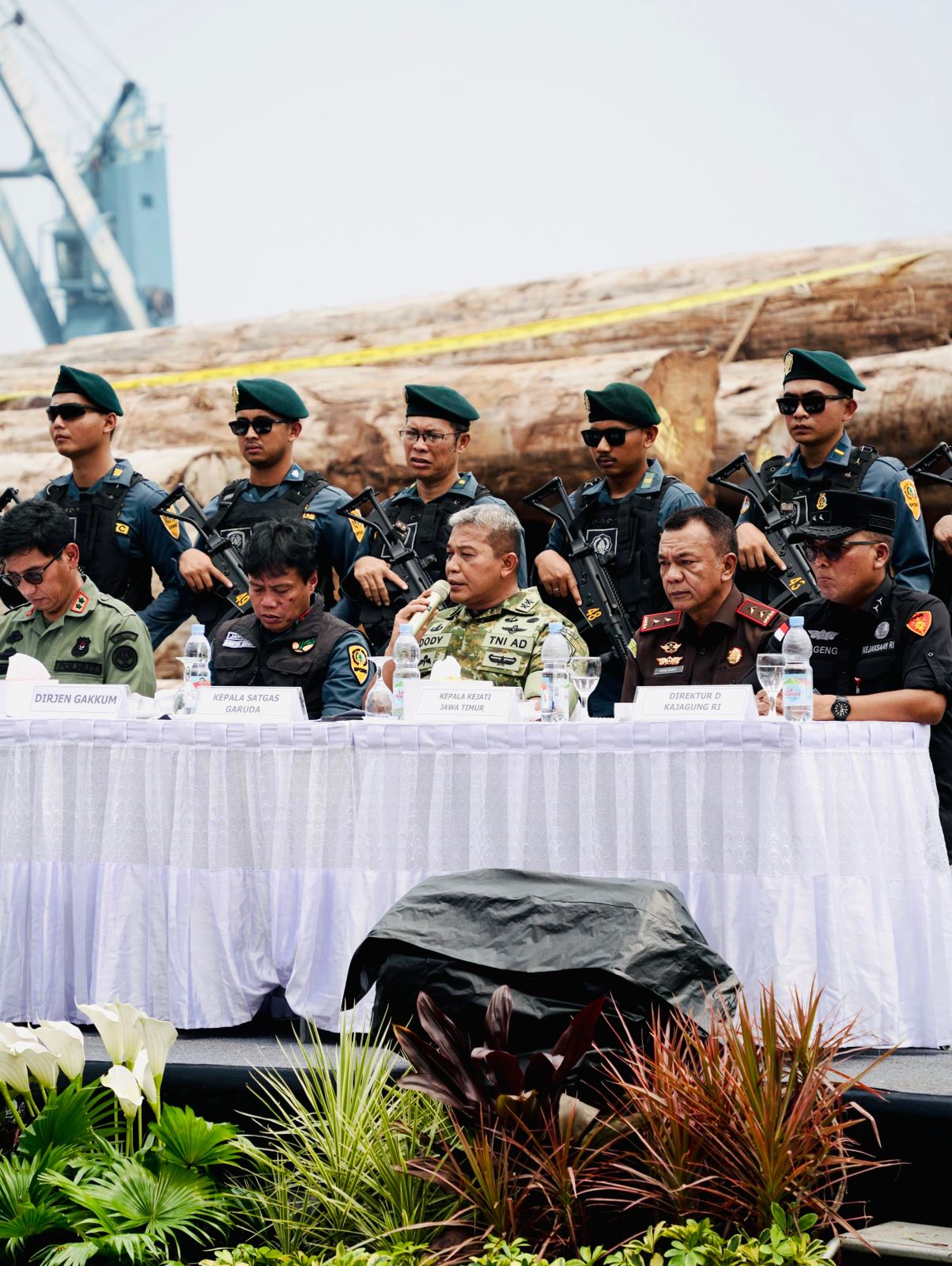 Dalam kegiatan pemaparan kasus, hadir sejumlah pejabat, antara lain Kepala Kejaksaan Tinggi Jawa Timur Agus Sahat ST Lumban Gaol, Kepala Satgas Garuda Mayjen TNI Dody Triwinarto, serta jajaran Ditjen Gakkumhut.