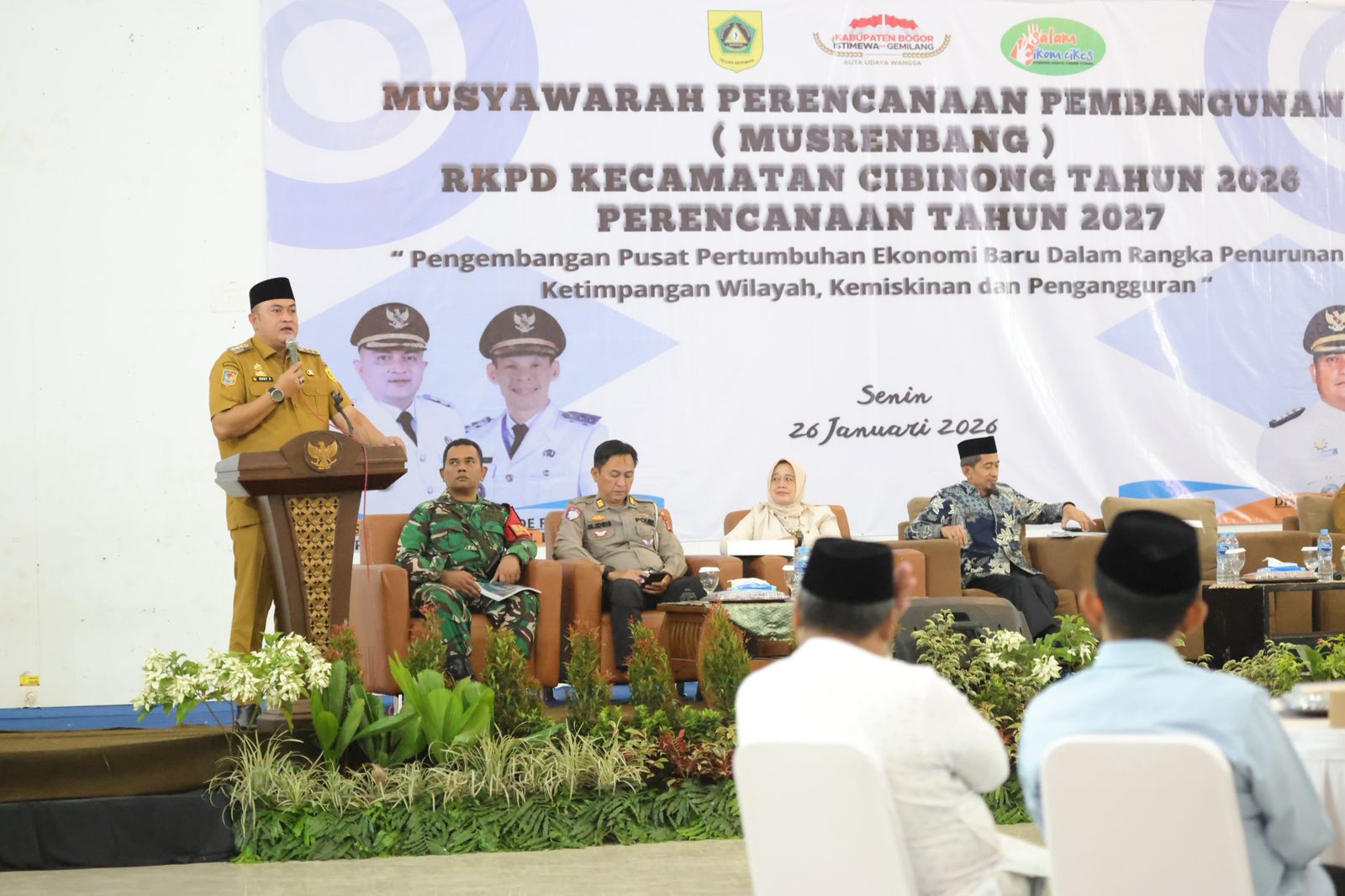 Penegasan tersebut disampaikan Bupati Bogor saat menghadiri Musyawarah Perencanaan Pembangunan (Musrenbang) RKPD Kecamatan Cibinong Tahun 2026 sekaligus Perumusan Perencanaan Pembangunan Tahun 2027, yang digelar di Kecamatan Cibinong, Senin (26/1/2026).